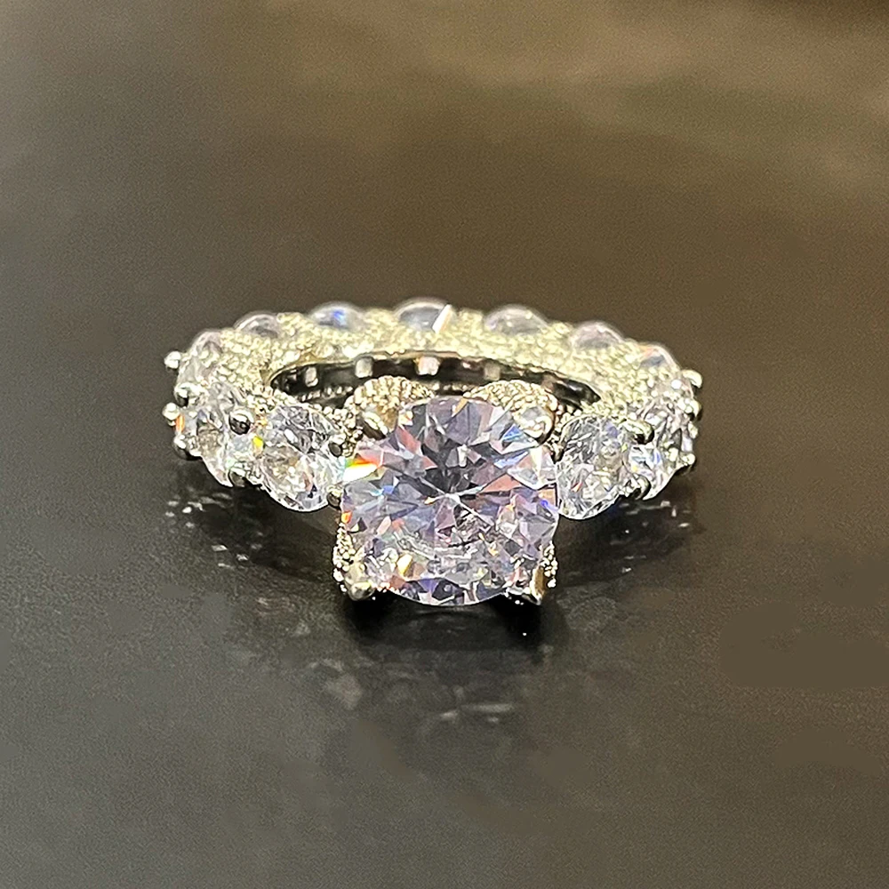 Huitan 2023 Eternity Promise Rings Women Luxury Fashion Engagement Wedding Jewelry Full Brilliant Cubic Zirconia Sparkling Rings